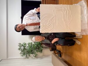 建築中の自宅の壁も漆喰のため漆喰の上に漆喰のアート作品が